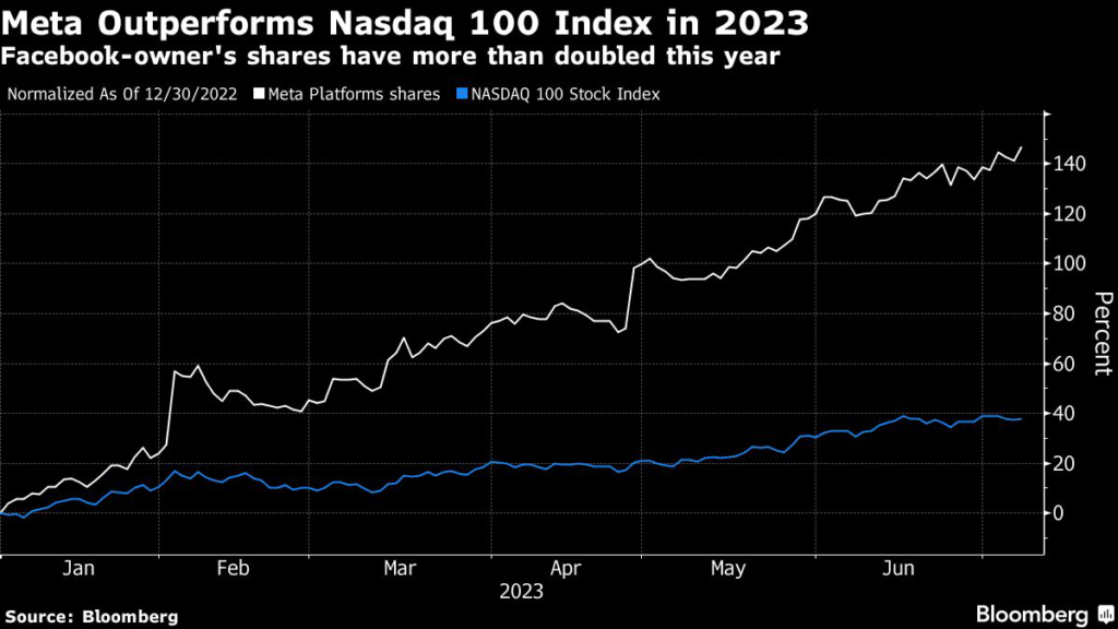 Meta, along with other tech giants, has been one of the driving forces behind gains across the S&P 500 and Nasdaq 100 benchmarks in 2023.