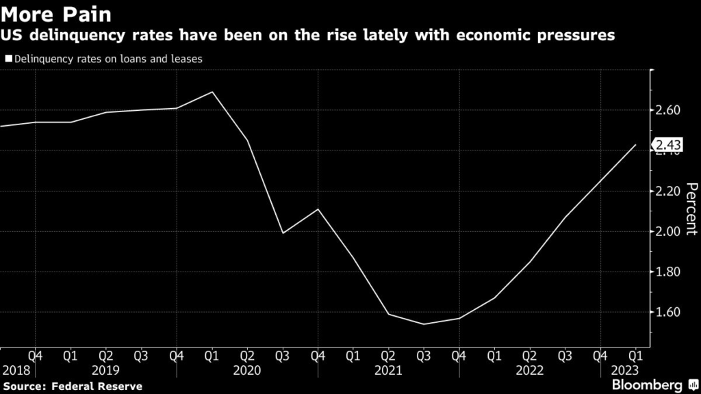 Meanwhile, there are more signs of stress in the consumer economy, with shoppers relying more on credit cards as excess savings dwindle. Delinquency rates are on the rise, too.