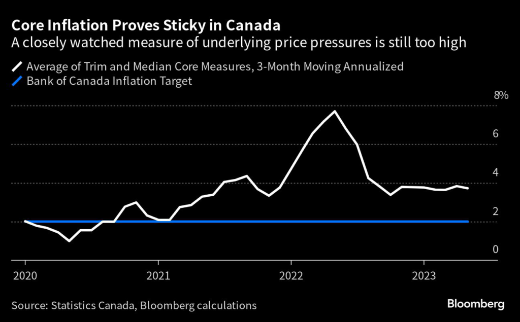 (Bloomberg) — The Bank of Canada raised interest rates for a second straight meeting, keeping the door open for more hikes as it pushed back inflation’s return to its 2% target.