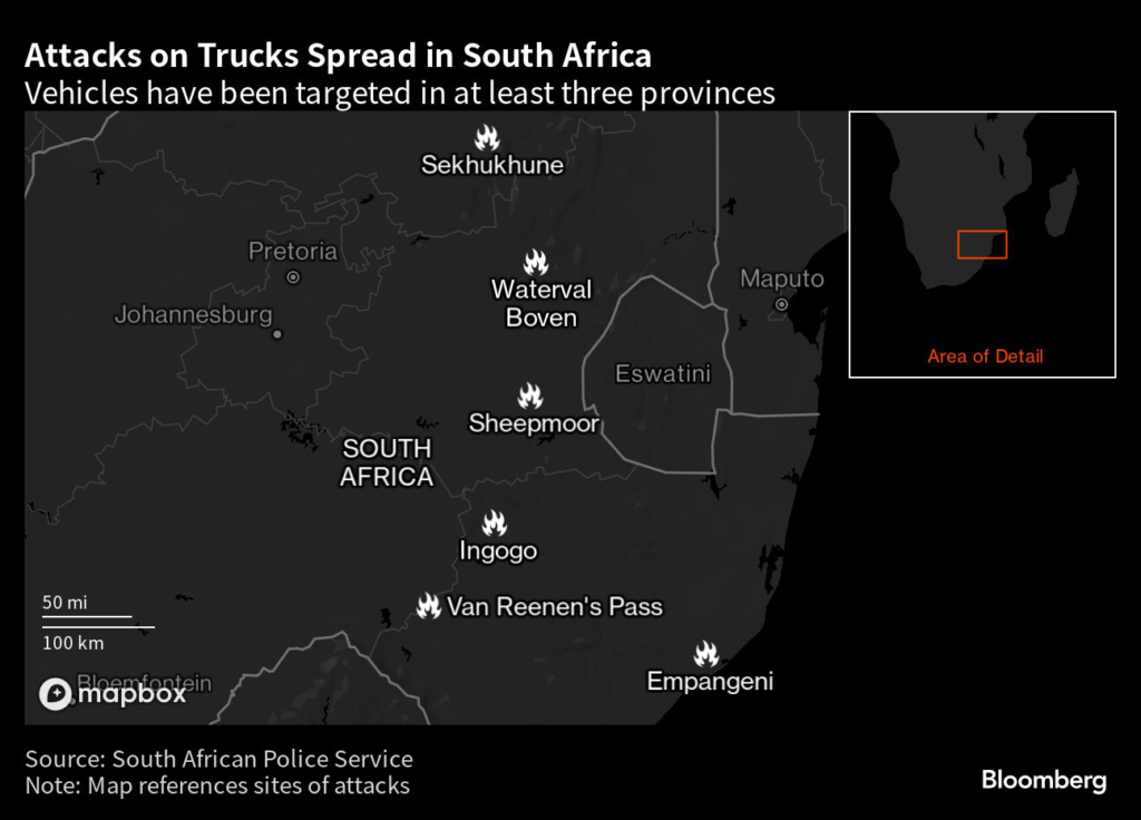 There have been about 67 attacks on trucks since 2018 and more than 100 vehicles have been torched, with the violence previously linked to disputes over the hiring of foreign drivers.
