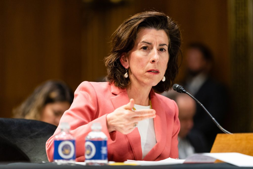 US Commerce Secretary Gina Raimondo arrived Tuesday in Sun Valley, Idaho, the site of an annual conference that brings together technology and media moguls.