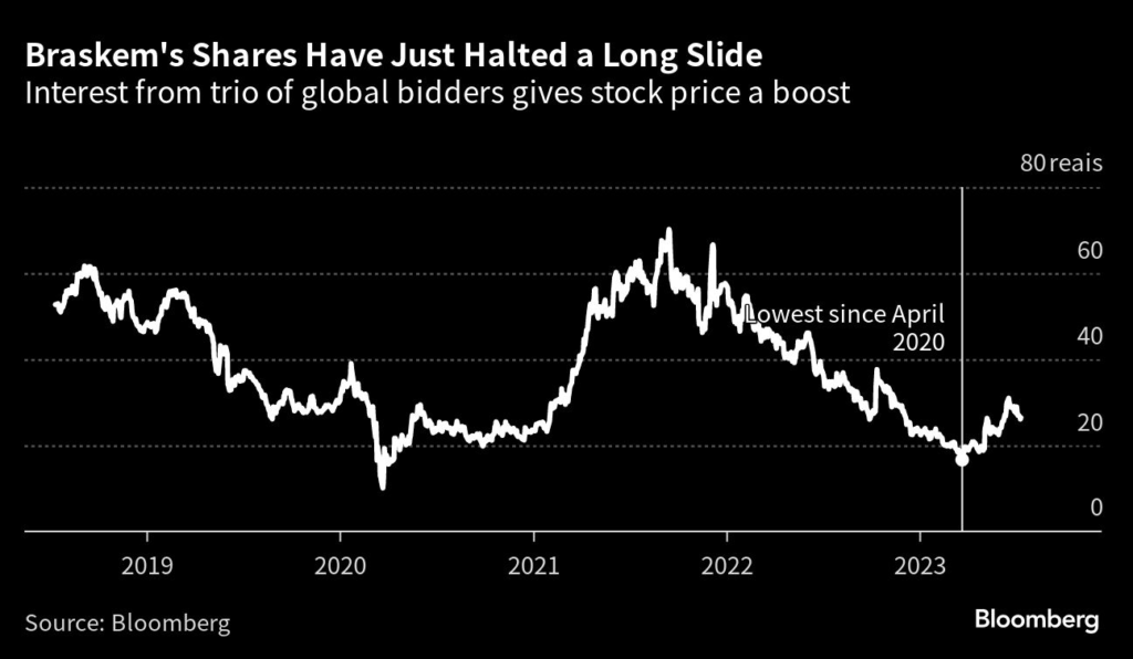 Interest in Braskem took off after its shares fell in March to the lowest in three years. On Thursday, shares rose as much as 3% after Braskem confirmed Novonor received a proposal from J&F for the acquisition of financial creditors’ holdings.