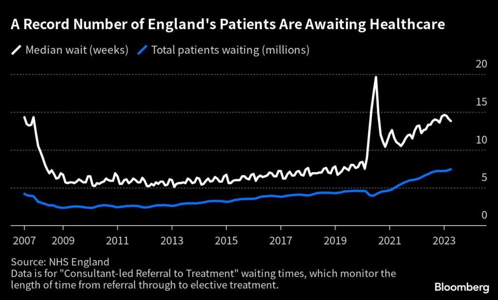 The most recent 72-hour walkout by doctors disrupted 106,000 appointments, while strikes across the health service have so far led to over 651,000 appointments and procedures being rescheduled. That helped push waiting lists for routine hospital treatment in England to a record 7.5 million by the end of May according to NHS data released Thursday.