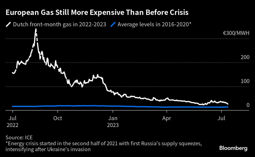 “If weather is persistently warm and renewables perform strongly,” prices could tumble to levels last seen before Russia invaded Ukraine, analysts including Martijn Rats said in a research note.