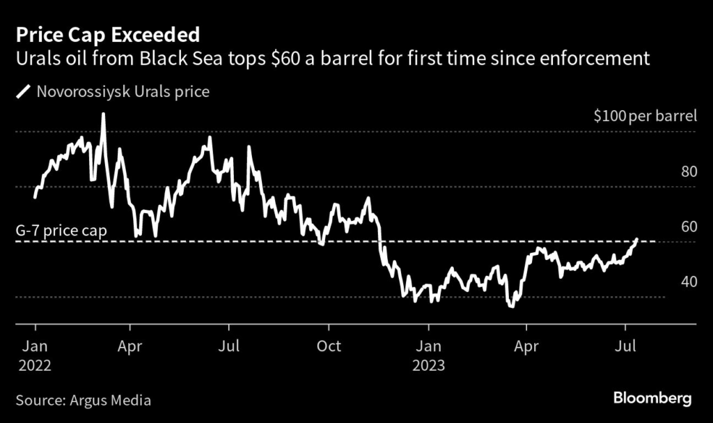 Russian Urals crude climbed above $60 a barrel, breaching a ceiling designed to stop Russian oil being transported on western-aligned ships — and with western insurance — unless it was priced under the threshold.