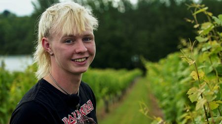 Twenty-year-old Ashton Kirby began working in the Bewl Water Vineyard in rolling countryside in East Sussex, southeast England, when his parents bought it in a neglected state three years ago.