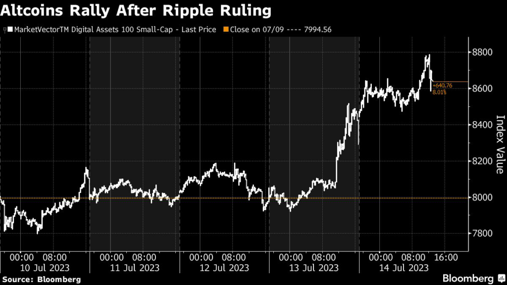 Smaller, lesser-known digital tokens such as Solana and Avalanche outperformed Bitcoin this week after a federal court decision in a case involving Ripple Labs Inc. fuels a “fear of missing out” impulse among cryptocurrency proponents.