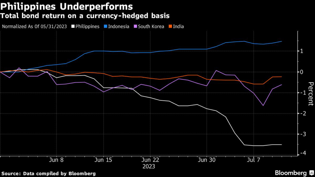 Peso notes handed investors a loss of 1.8% so far in July, extending their drop since the start of June to 3.5% on a currency-hedged basis, according to data compiled by Bloomberg.
