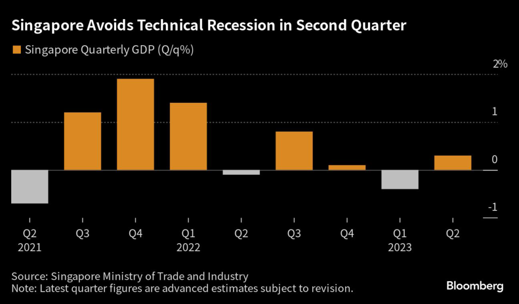 (Bloomberg) — Singapore’s economy unexpectedly expanded in the second quarter, staving off fears of a technical recession in the city-state amid a global slowdown.