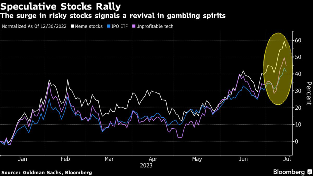 (Bloomberg) — The long-awaited broadening in the 2023 equity advance is bringing gains to corners of the market even unabashed bulls may view uneasily.
