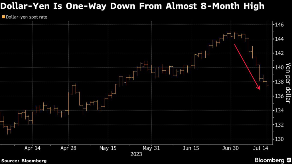 “When you look at the selloffs of JGBs and the yen’s recent moves — or yen’s strength, it seems speculation about the BOJ’s policy tweak is encouraging investors to unwind their positions,” said Teppei Ino, the Tokyo head of global markets research at MUFG Bank Ltd.