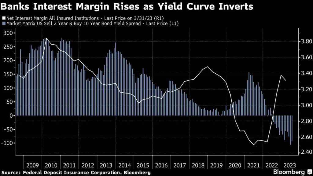Instead of being doomed by an inverted curve, Jamie Dimon and fellow bankers are benefiting from higher rates.