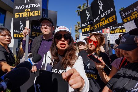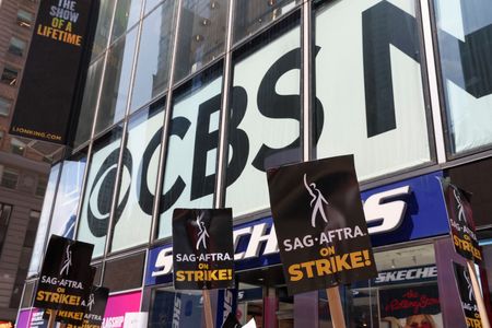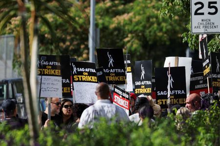 LOS ANGELES (Reuters) -Striking Hollywood actors joined film and television writers on picket lines for the first time in 63 years on Friday, cheering and chanting outside major studios with calls for higher streaming-era pay and curbs on use of artificial intelligence.