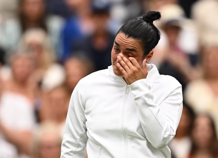 LONDON (Reuters) -Czech Marketa Vondrousova left Tunisia’s Ons Jabeur heart-broken once again as she claimed a surprise 6-4 6-4 victory on Saturday to become the first unseeded player to win the Wimbledon women’s singles title.