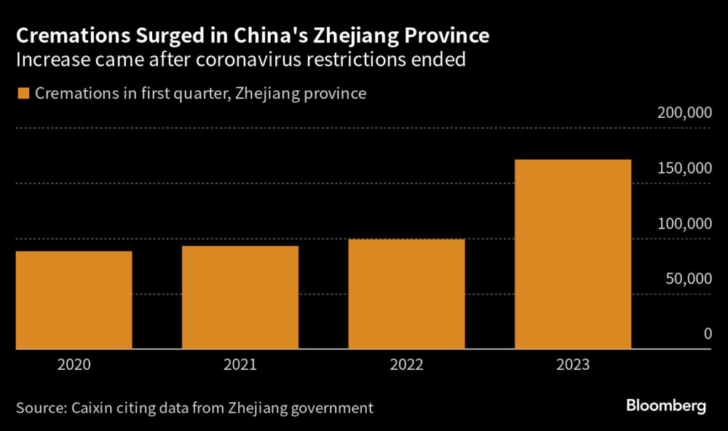 (Bloomberg) — Cremations in one of China’s most populous provinces surged by 72.7% year-on-year in the first quarter, local media reported, providing a rare insight into the scale of mortality due to the government’s sudden relaxation of coronavirus restrictions in December.
