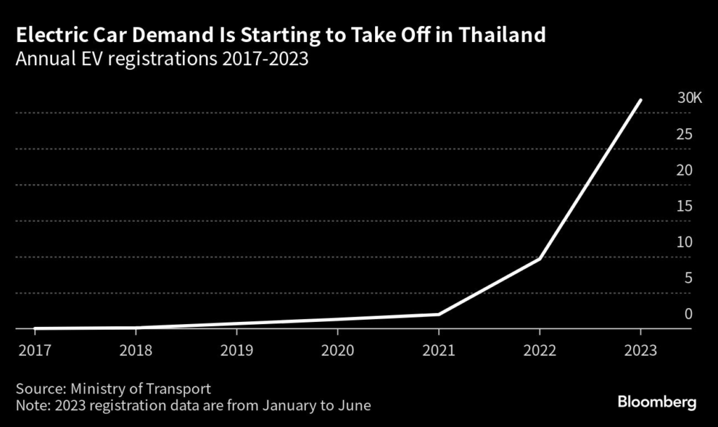 The nation has already attracted 75 billion baht ($2.2 billion) from the EV industry, led by a slew of Chinese investments from BYD Co., Great Wall Motor Co.
