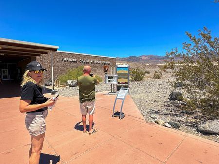 Death Valley, California, officially reached 128 F (53 C) on Sunday, according to the National Weather Service, although the famed temperature display sign outside the Furnace Creek Visitors Center showed 133 F (56 C).