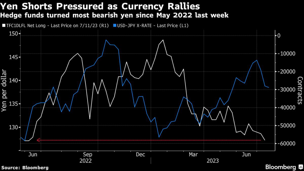 (Bloomberg) — Hedge funds turned the most bearish on the yen in more than a year just as the currency was in the midst of a two-week rally.
