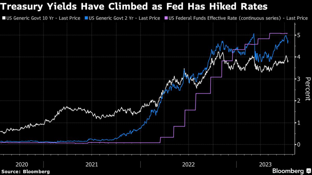 Treasury markets have been whipsawed this year, with bets alternating between expectations for a Fed pivot on one hand, and even more rate hikes on the other.