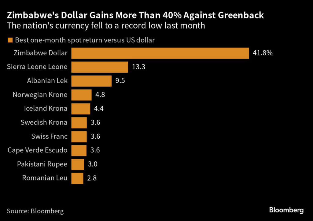 Not in the largely dollarized economy of Zimbabwe, where the local dollar has recouped nearly half of its value against the US dollar after a 90% plunge this year.