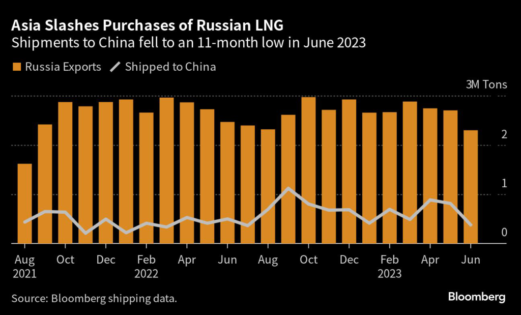 They are buying the least Russian LNG in almost a year, with June shipments halving from May, according to data compiled by Bloomberg.