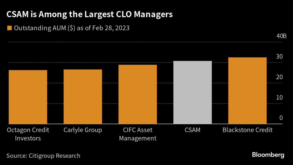 One factor that helps improve the profitability of CSAM’s CLOs is their relatively low funding costs: In March, CSAM sold a traditional CLO whose AAA rated portion, the last to absorb losses from the portfolio, yielded 185 basis points more than the benchmark.