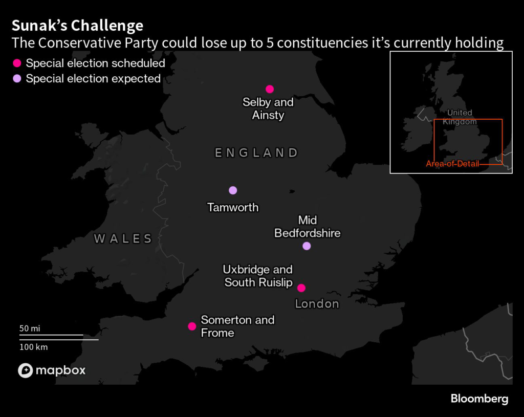 Losing all three would be a major setback for Sunak as he tries to show he can turn around the Conservative Party’s slump in the polls, which began under Johnson and has barely recovered from the turmoil of Liz Truss’s disastrous seven-week premiership.
