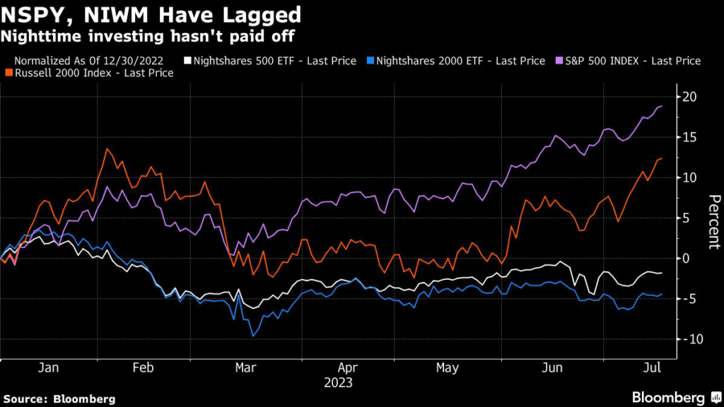 (Bloomberg) — Two exchange-traded funds designed to profit from overnight gains on US stocks are set to shutter after lagging their daytime counterparts.