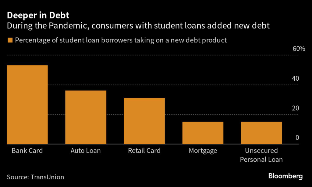 Compounding the strain, many of the student-loan borrowers have taken on other kinds of debt during the pandemic, likely at a higher cost as rates went up, the TransUnion study found.