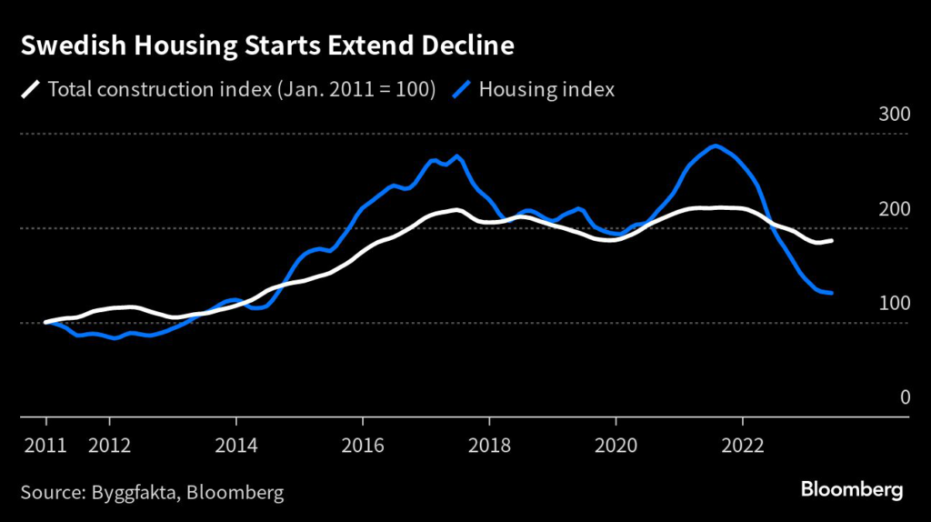 (Bloomberg) — An indicator of Sweden’s residential construction declined to the lowest level in almost nine years as one of the world’s worst housing price slumps takes a toll on activity.