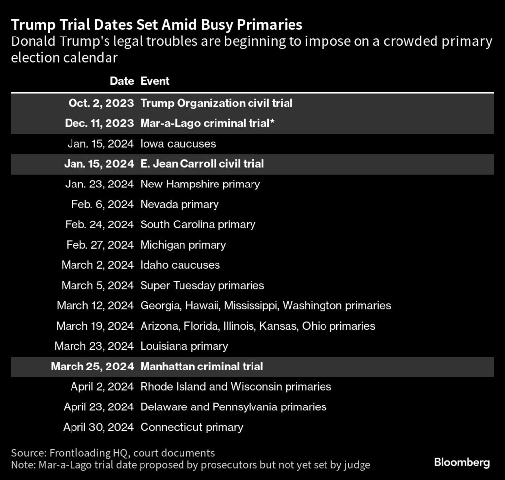 (Bloomberg) — Donald Trump’s legal obligations are mounting just as the race for the 2024 presidential election heats up.