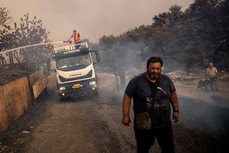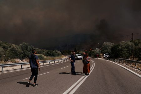ATHENS (Reuters) -Wildfires burned for a third day west of the Greek capital Athens on Wednesday, as authorities braced for a new heatwave stoking tinderbox conditions across the country.