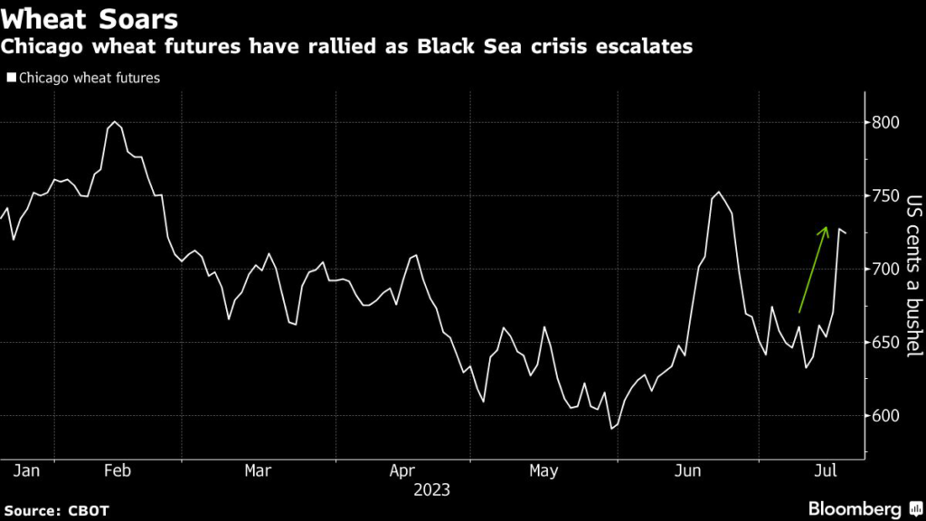 Since Moscow halted the Black Sea agreement that allowed Ukraine to export part of its grain harvests, Russia has attacked Ukrainian grain storage facilities and warned that all vessels heading to Ukrainian ports would be considered potential carriers of military supplies.