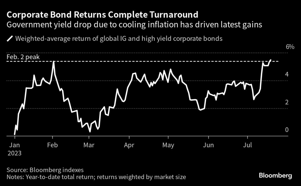 Global corporate bond returns just hit their highest level this year on bets that the inflation crisis is coming to an end. Some investors say this may be as good as it gets, with dangers lurking in credit markets for the second half.