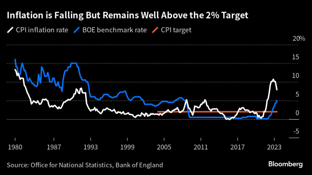 However, the BOE re-accelerated its most aggressive hiking cycle in three decades last month, hiking rates by half a percentage point to 5% after signs that price and wage pressures are proving much stickier than expected.