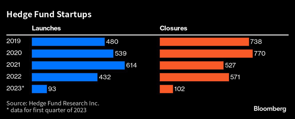 More than 2,500 hedge funds have shuttered over the last five years, exceeding launches during the period, according to data compiled by Hedge Fund Research Inc.