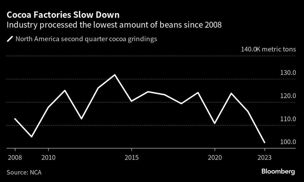 (Bloomberg) — Cocoa factories around the world are slowing down fast, a sign that the worst is still to come for chocolate makers.
