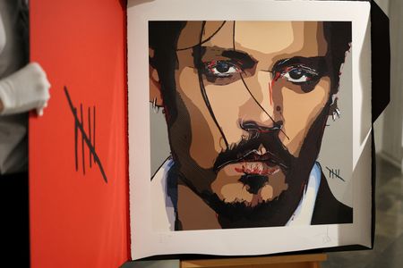 LONDON (Reuters) – A self-portrait by Johnny Depp went on sale on Thursday, depicting the Hollywood star when he was in between court cases relating to his marriage to ex-wife Amber Heard.