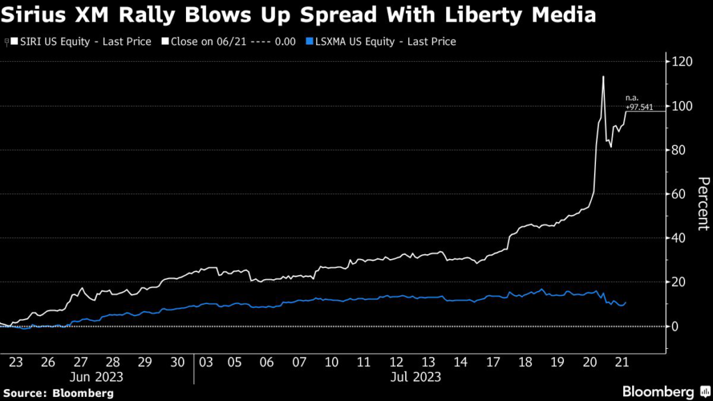 That’s a headache for traders who’ve been playing a so-called pairs trade between the two units, which requires going long Liberty SiriusXM and shorting Sirius XM.