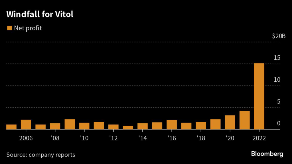 Vitol’s net profit of $15.1 billion in 2022 was a 258% increase on the previous year, itself a record, and more than the largest oil trader had made in the previous six years combined.