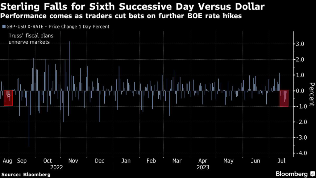 (Bloomberg) — The pound is on its longest losing streak since traders dumped the currency ahead of Liz Truss becoming prime minister last year.