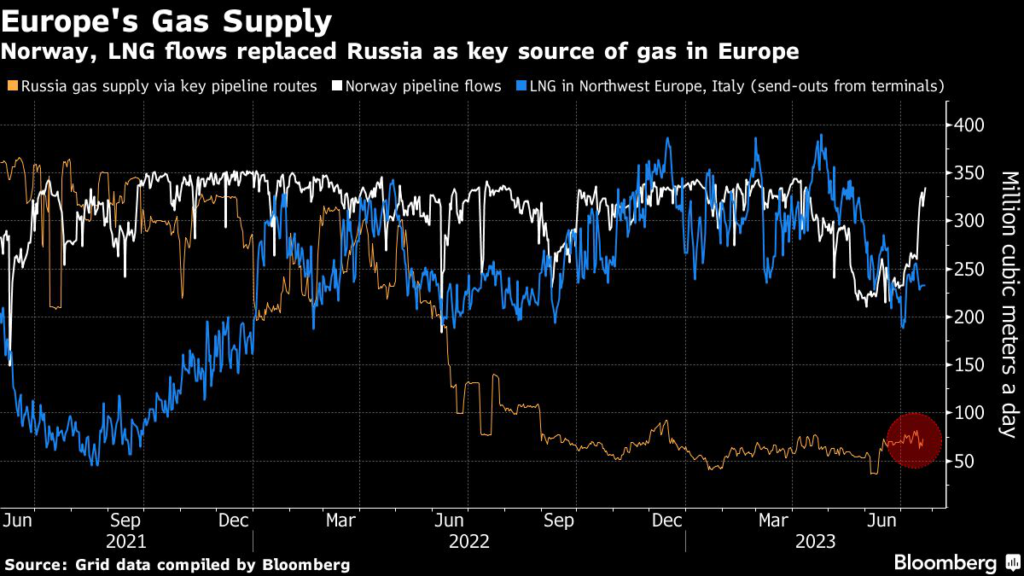 While there’s no indication that gas supplies are affected by the rise in hostilities, Russia’s fuel transit through Ukraine has been at risk since the war started 17 months ago.