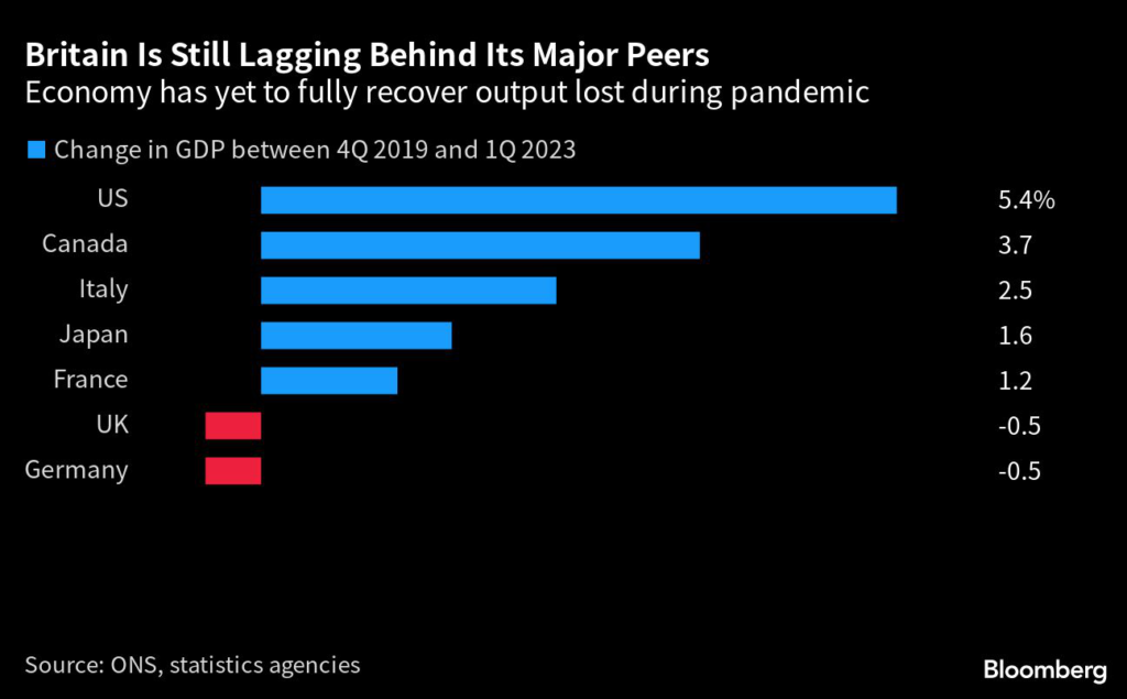 Britain’s inflation rate dropped to the lowest in 15 months, fueling hopes among investors and economists of a shift away from the worst price spiral in the Group of Seven nations.
