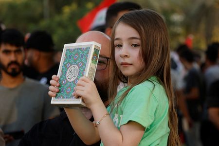 BAGHDAD (Reuters) -Several thousand Iraqis demonstrated in Baghdad on Saturday over the burning or damaging of the Koran during anti-Islam protests in Sweden and Denmark, in a gathering called by ruling Iraqi parties and armed groups, many close to Iran.