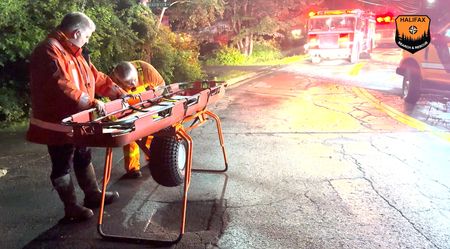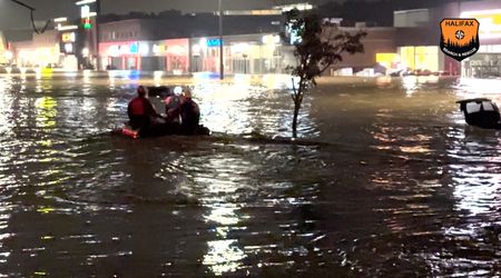 Pictures posted on social media from Halifax showed abandoned cars almost covered with flood waters and rescue workers using boats to save people.