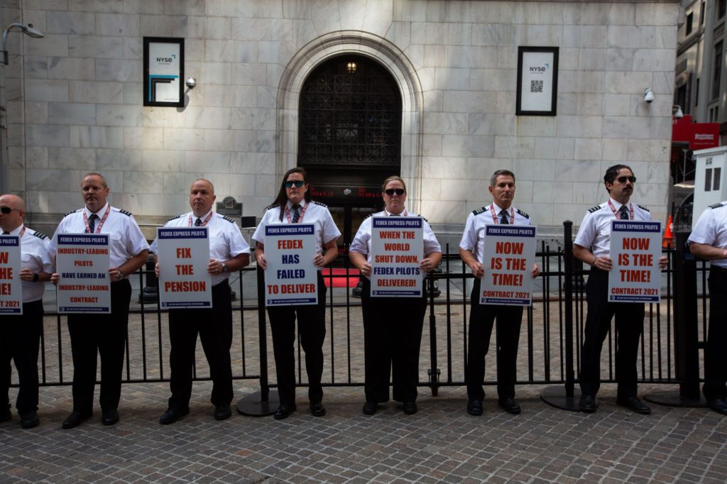 They fall under the Railway Labor Act, which governs only the airline and rail industries and makes it difficult to strike. Although FedEx’s labor contract became amendable in November of 2021, the union cannot take any action until the National Mediation Board gives up on working out a mediated solution and declares the talks at an impasse.