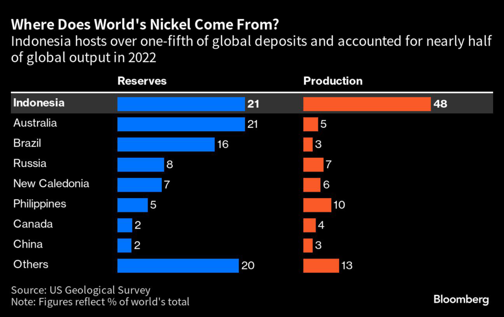 Indonesia is a major producer of nickel and could contribute over 60% of the world’s nickel supply by the end of the decade, according to Benchmark Mineral Intelligence.
