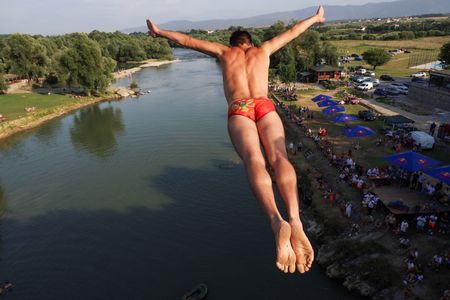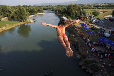 URA E FSHEJT, Kosovo (Reuters) – With arms outstretched like bird’s wings in the traditional “swallow style”, Evald Krnic plunged more than 20 metres from a bridge in southern Kosovo into the cold White Drin river.