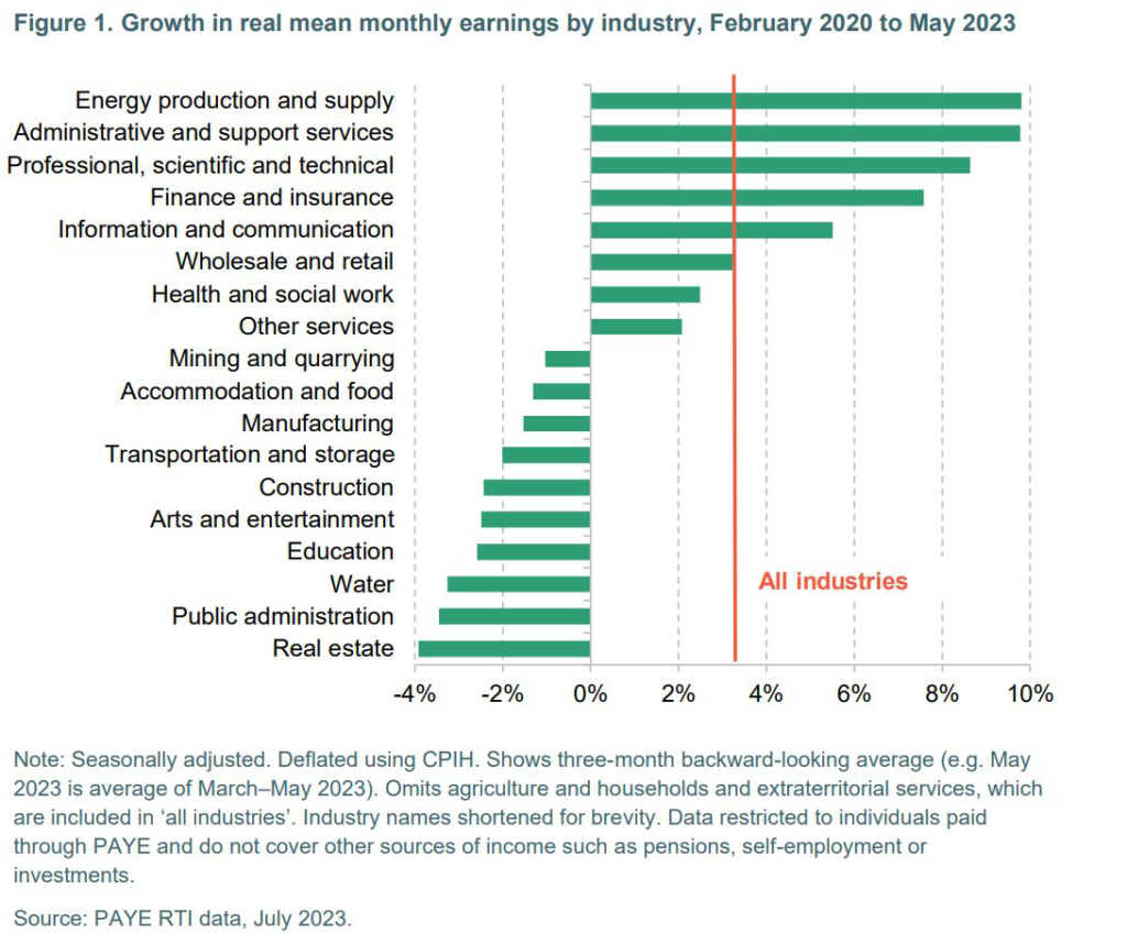 Those working in energy, administrative support services, professional and technical posts had the highest pay raises.