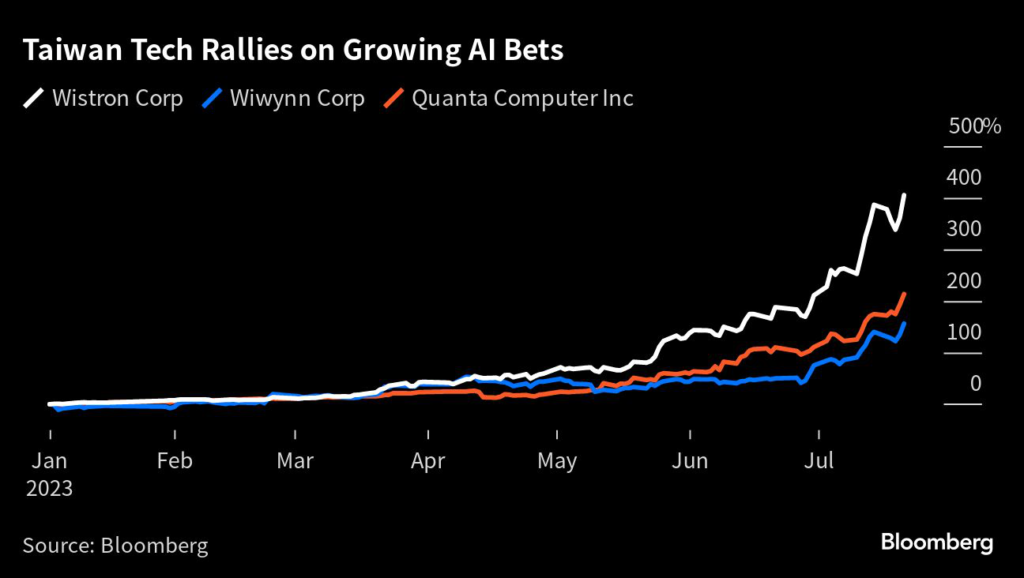 (Bloomberg) — The rally in Taiwan’s technology stocks is likely to continue as earnings at hardware firms are expected to get a boost from booming demand for artificial intelligence servers.